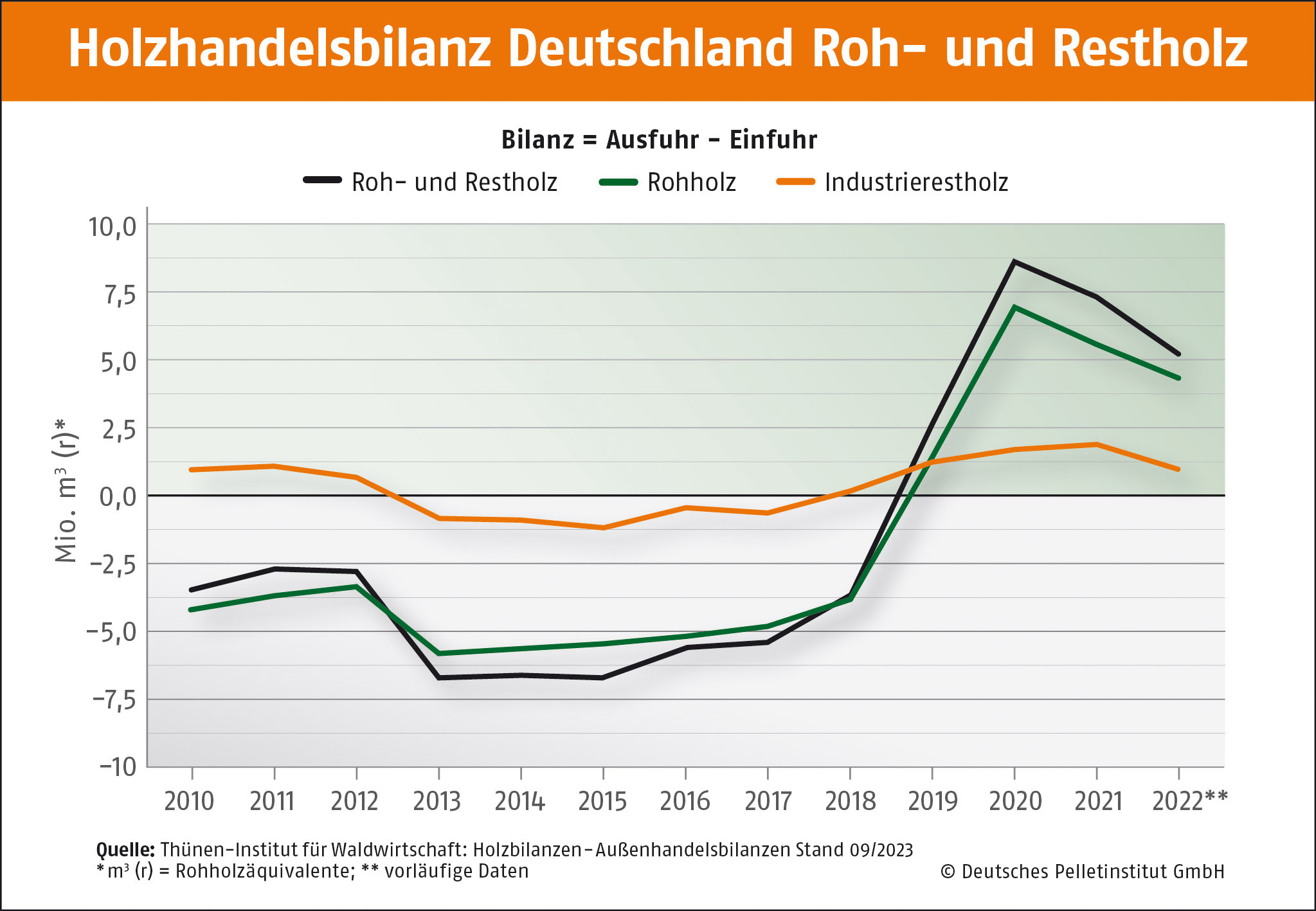 Kurze Wege, mehr Export als Import. Holzpellets aus Deutschland werden aus regional anfallenden Nebenprodukten der Holzwirtschaft hergestellt und stammen somit aus nachhaltiger Waldbewirtschaftung. Zudem kann Deutschland seinen Pelletbedarf weiterhin selbst decken. Das bestätigen Daten des Statistischen Bundesamtes (Destatis) und aktuell die des Thünen-Instituts zur Holzhandelsbilanz..